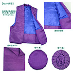 商品名: 新紫のちゃんちゃんこ三点セット 価格7,840円(新価格) セット内容 −男女兼用− ・ちゃんちゃんこ (着丈約65cm・胸囲約105cm迄) ・帽子(50〜58cm) ・座布団カバー×1 (約59×55cm) 70才の「古希」・77才の「喜寿」のお祝いシーンで使える注目度間違いなし!! ※洗濯、クリーニングはできません。