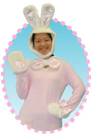 商品名: ふわふわうさぎ3点セット 定価:4,180円(新価格) ◇セット内容: ・うさぎキャップ×1 ・リボンBOWタイ×1 ・ミトン×1セット ◇サイズ: 身長160〜180p対応 首周り〜54p 胸囲〜120p ウエスト〜110p ◇パッケージサイズ:33×45×7.5p 日本製 ※洗濯、クリーニングはできません。